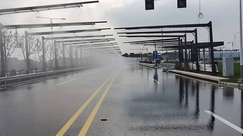 在智能汽車的研發(fā)過程中,考慮到公共交通復(fù)雜程度的影響,需要在汽車試驗(yàn)場(chǎng) 設(shè)置各種交通模擬場(chǎng)景,使智能汽車在模擬的場(chǎng)景中進(jìn)行各項(xiàng)性能測(cè)試,驗(yàn)證智能汽車的 智能性、穩(wěn)定性和安全性。其中,雨霧天氣是交通模擬場(chǎng)景中的一項(xiàng)重要環(huán)境場(chǎng)景,雨霧天 氣能大大降低道路的能見度,每年都存在因大霧、團(tuán)霧等天氣而發(fā)生的交通事故,給汽車、 行人的出行帶來較大的安全隱患。