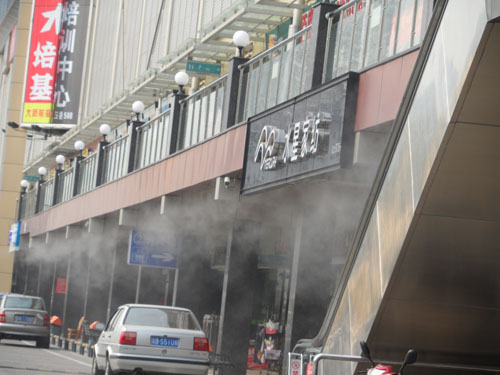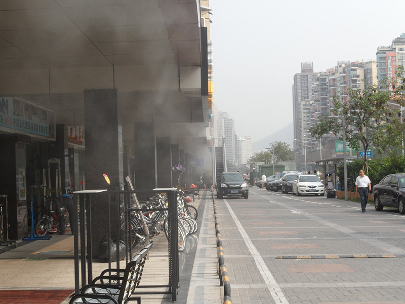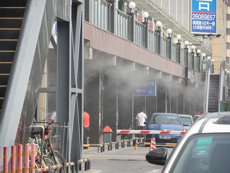商業(yè)街步行街噴霧降溫全方位多功能: 降溫、造景、加濕、防塵、防靜電、除臭、消毒、噴藥、防疫、驅(qū)蟲、驅(qū)蚊.