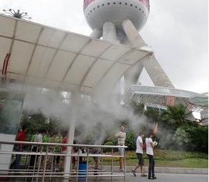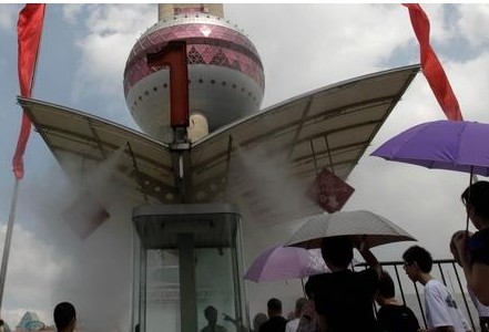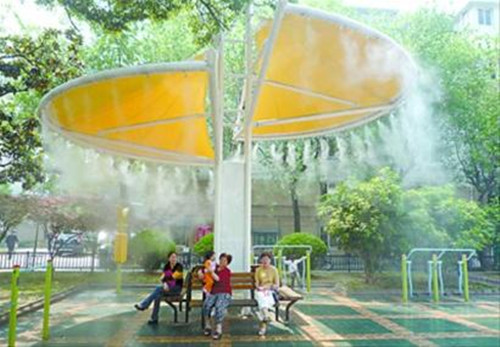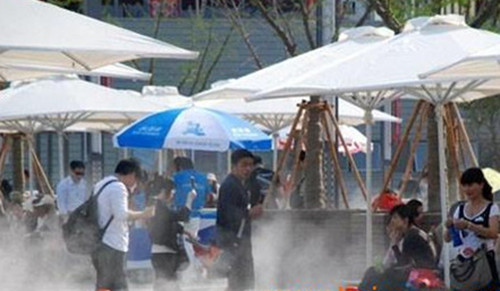 在盛夏,當城市氣溫達到35以上時,即使打著傘,戴著太陽鏡,來自太陽的直射和來自地面的反射,依然讓人感覺酷暑難當。而在噴霧降溫系統(tǒng)的作用下,空氣溫度可降至25℃,達到人體的最佳溫度,所以即使置身炎熱室外,依然感到舒暢。