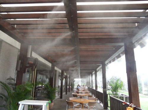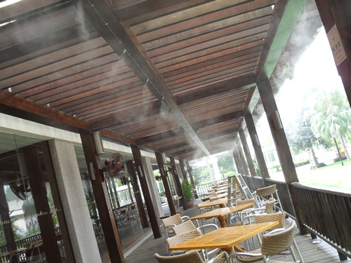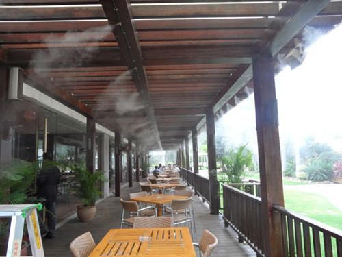 露天餐廳咖啡廳噴霧降溫產(chǎn)品全方位多功能: 降溫、造景、加濕、防塵、防靜電、除臭、消毒、噴藥、防疫、驅(qū)蟲、驅(qū)蚊.