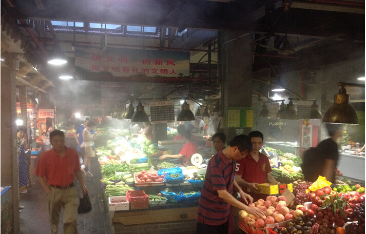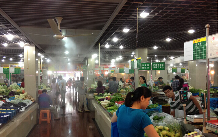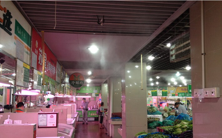 農(nóng)貿(mào)批發(fā)市場(chǎng)菜市場(chǎng)冷霧降溫產(chǎn)品全方位多功能: 降溫、造景、加濕、防塵、防靜電、除臭、消毒、噴藥、防疫、驅(qū)蟲、驅(qū)蚊.